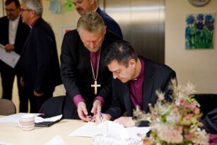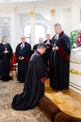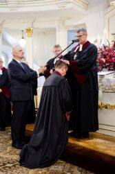 Ręce na nowego biskupa włożyli również wszyscy obecni biskupi ewangeliccy z kraju i zagranicy.