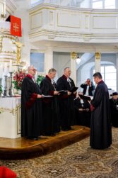 Prezes Synodu Kościoła ks. dr Adam Malina odczytał decyzję wyboru biskupa wrocławskiego i zwrócił się z prośbą do Biskupa Kościoła i obecnych biskupów diecezjalnych o wprowadzenie ks. Orawskiego w biskupią posługę.